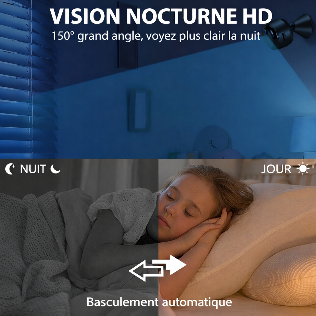 Surveillez votre intérieur jour et nuit grâce à une vision nocturne HD avec angle large de 150°. La caméra bascule automatiquement entre le mode jour et nuit pour offrir une image nette, même dans l’obscurité totale. Discrète, silencieuse et performante, elle vous permet de garder un œil sur ce qui compte le plus : bébé, animaux, domicile ou bureau, en toute tranquillité et sans interruption.